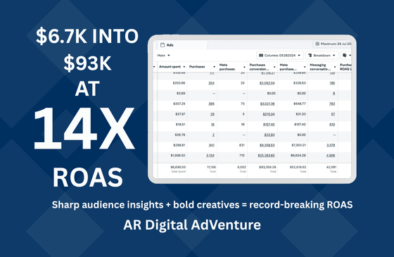 This eCommerce brand, selling a variety of products including women’s clothing, men’s apparel, and gift items, wanted to scale sales across multiple categories. We launched a multi-segment Facebook Ads strategy — combining precise targeting, creative variation, and retargeting — to drive consistent purchases. With only $6,690 in ad spend, the campaigns generated 11,156 purchases and over $93,358 in revenue — achieving nearly 14X return on ad spend (ROAS) at an average cost per purchase of just $0.60.